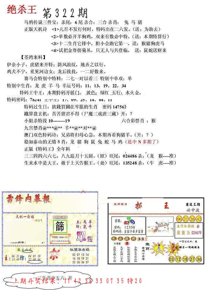 322期绝杀1.肖1.尾 【虎肖1尾】 ???????