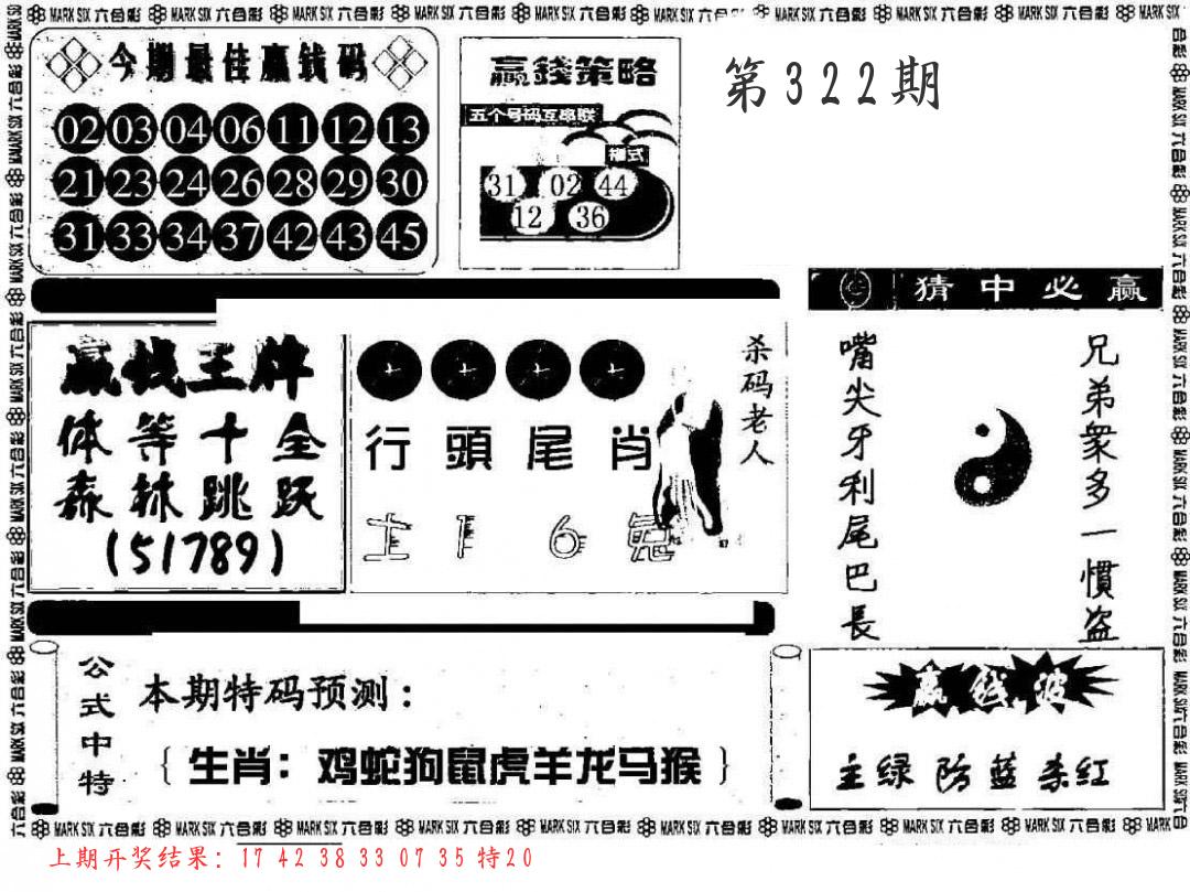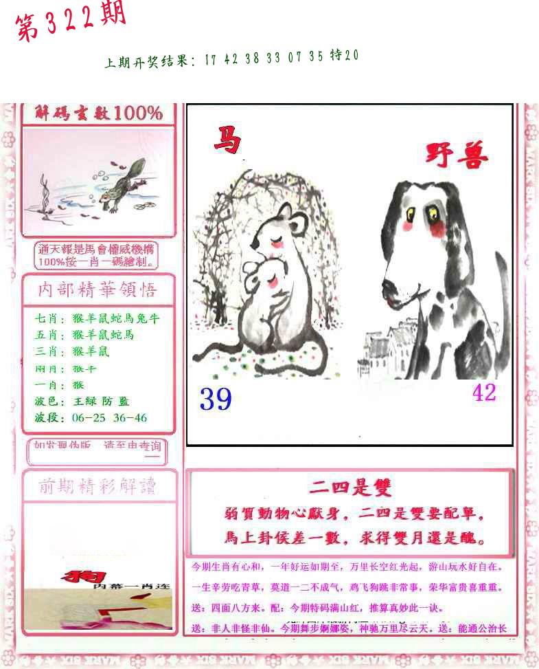 316期【鸡猴羊兔牛鼠龙马】开44狗对